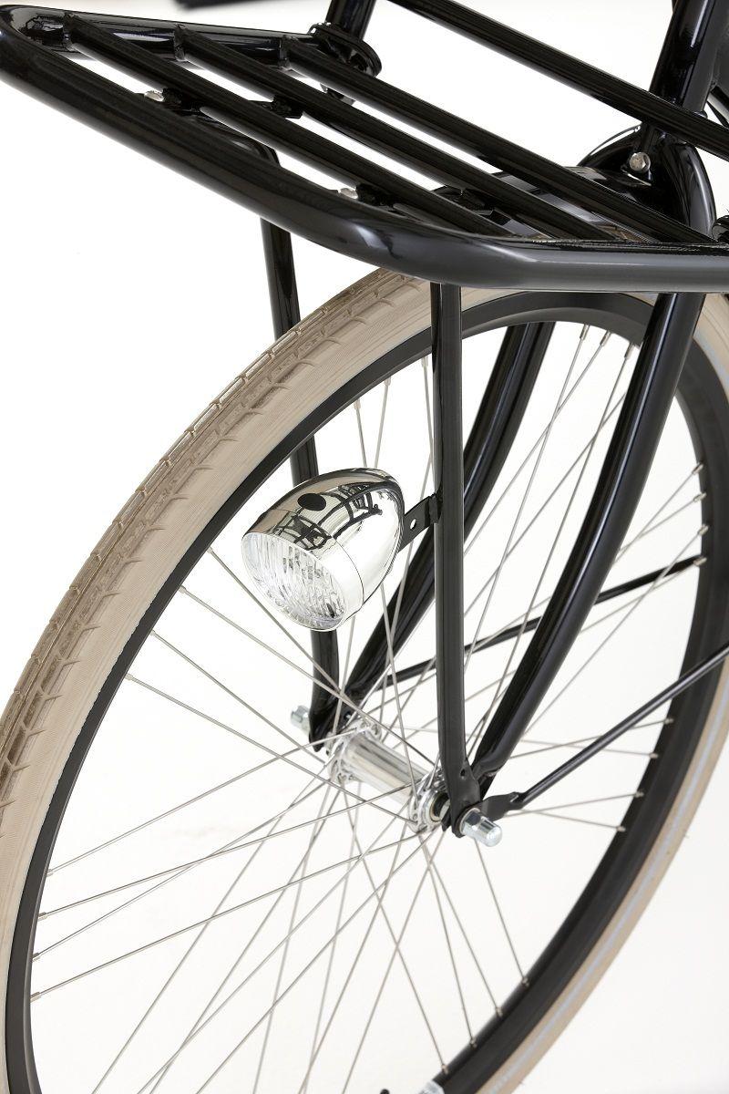 De Four is oersterk door zijn stalen frame, zijn aluminium dubbelwandige velgen en extra dikke banden. Het karakteristieke van deze fiets is het retro, klassieke uiterlijk en de praktische voordrager. De praktische voordrager is ideaal voor het vervoeren van spullen of boodschappen. Plaats eenvoudig een krat of fietstas op de voordrager. Ga je een eind fietsen, dan zit je in ieder geval comfortabel op het gel zadel van Selle Royal Drifter.
