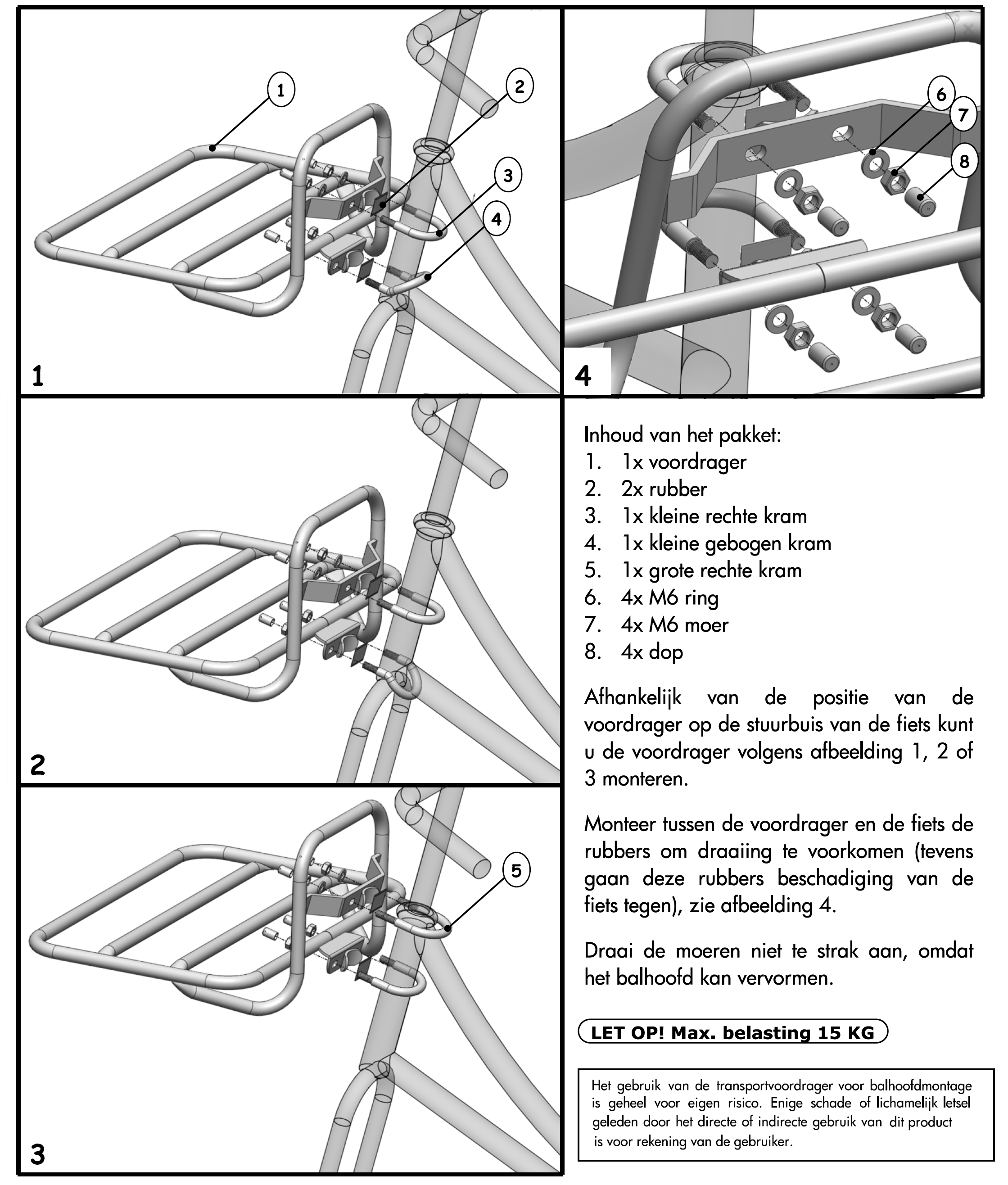 Let op: de maximale belasting is 15kg.